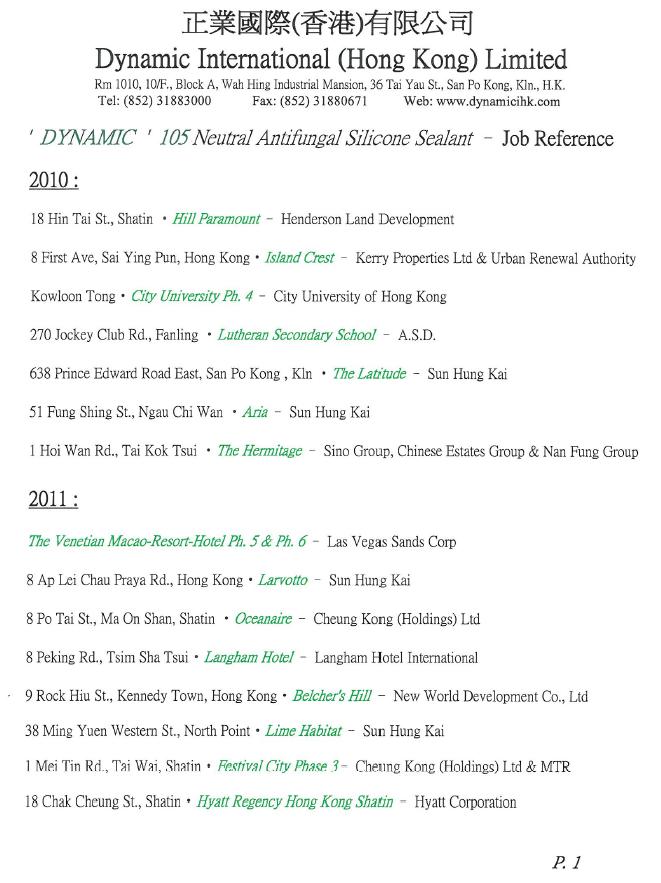 | Contact Details : | DYNAMIC INTERNATIONAL (HONG KONG) LIMITED | |