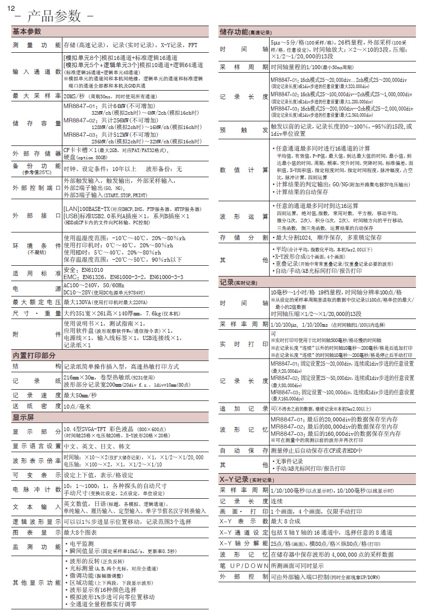 Product Name : 存储记录仪 MR8847-01/-02/-03