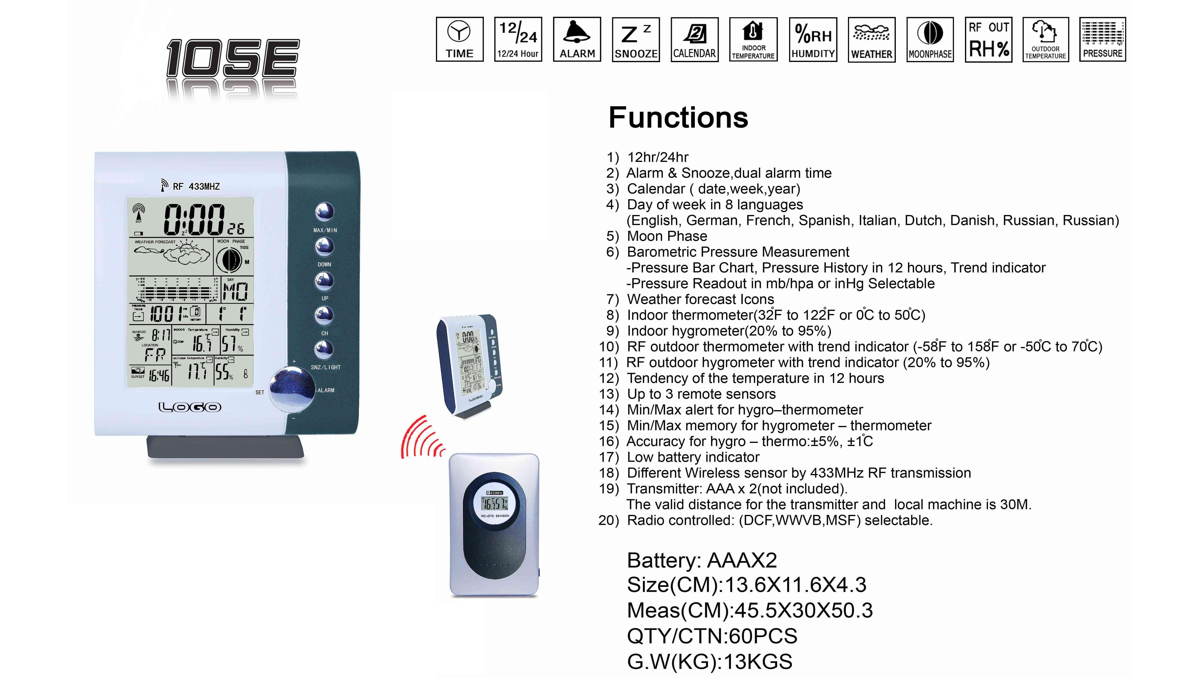 Product Name : | RF multi-function wireless weather station clock |