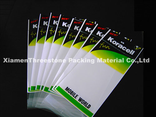 Features: 1) Material: high quality OPP or BOPP film, paper card inside head 2) Customized size and designs are available 3) Customized printing designs, up to 8 colors and all CMYK colors, added adhesive tapes, resealable