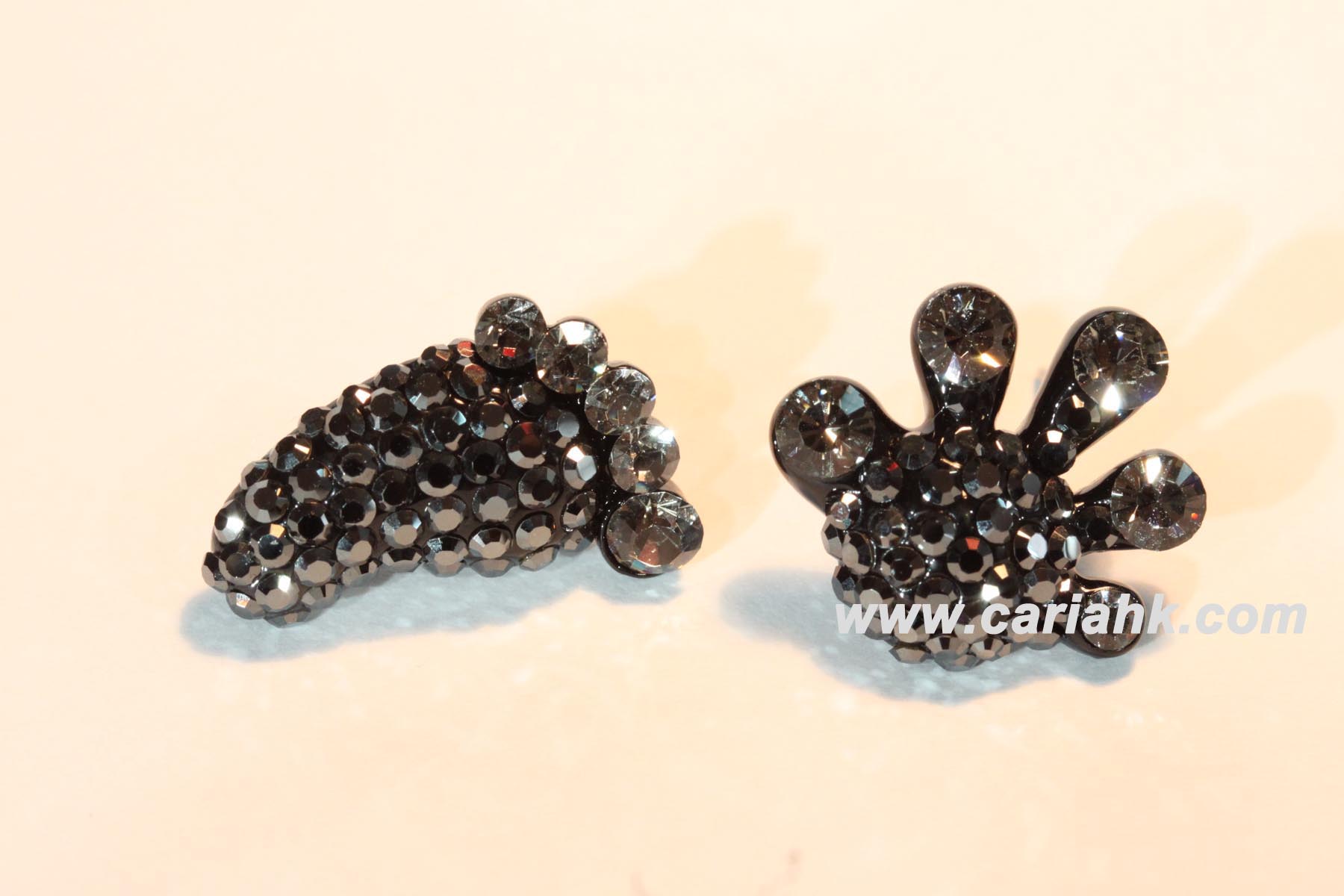 Hand and foot designed stud earring with black and grey crystal effect stones