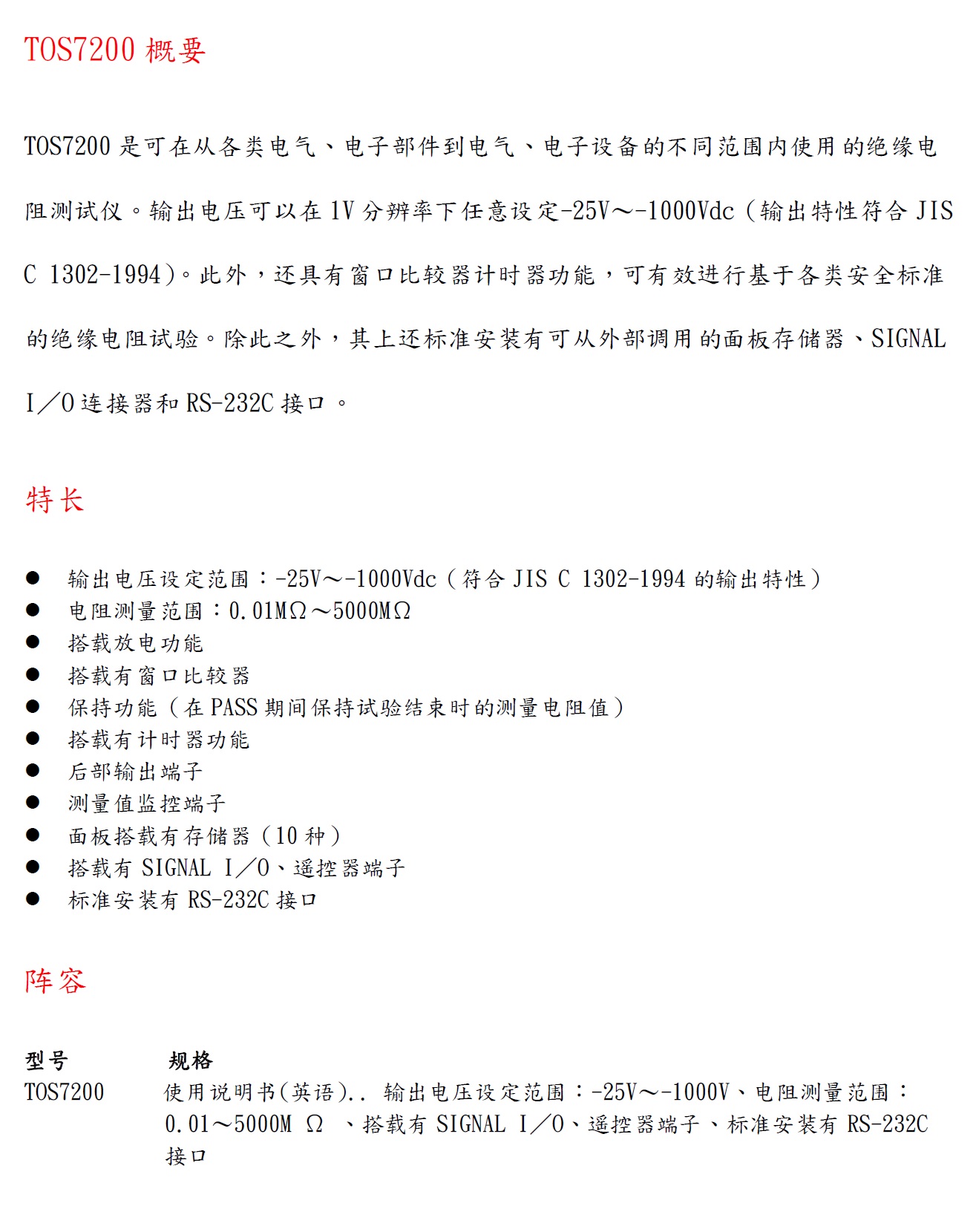 Product Name : 绝缘電阻測試儀 - TOS7200