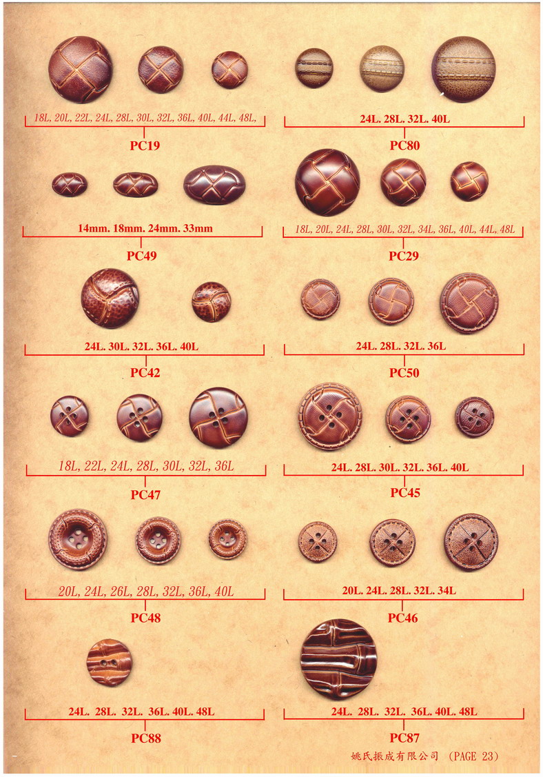 Product Name : | P 23 尼龍仿皮鈕 (Nylon Immitation Buttons) |