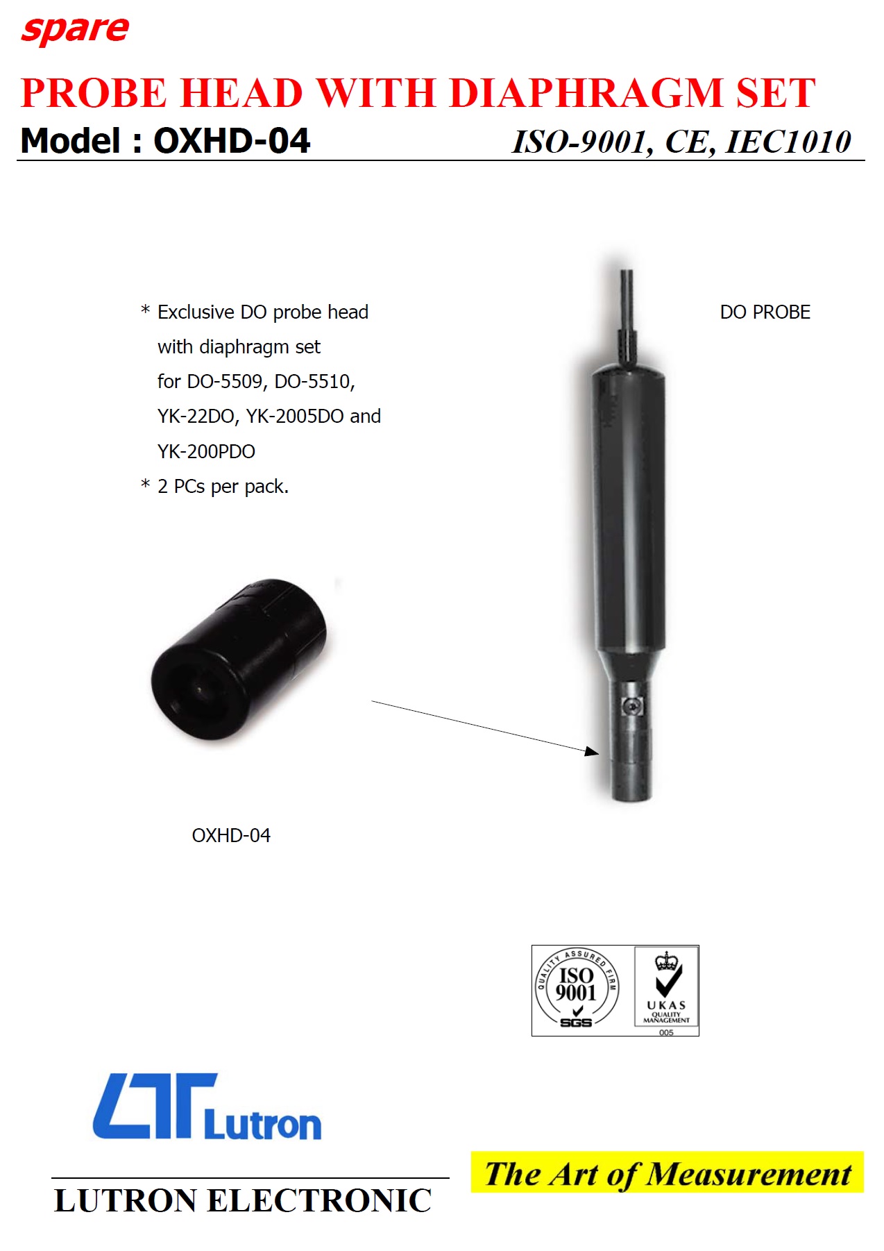 * Exclusive DO probe head with diaphragm set for DO-5509, DO-5510, YK-22DO, YK-2005DO, PDO-519, PDO-520, DO-5519, DO-5510HA and YK-200PDO.