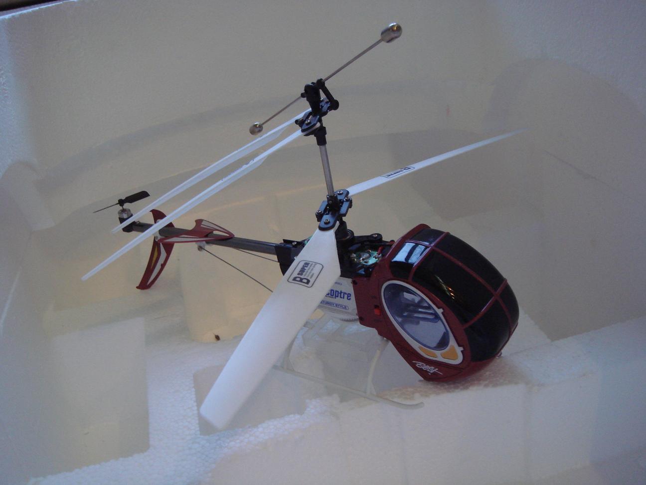 Big Mocho Coaxial contra-rotating main rotor Using the Ultra tough iron-fiber materials New servo and mixer system Powerful lithium battery Micro servos, receiver, Gyro and Speed controller/mixer Description: R/C Electric Powered Helicopter 4channel STABLE &EASY FLYING DOUBLE MAIN ROTOR Packing Size: 49*42*63.5 CM Certificate: CE/ROHS