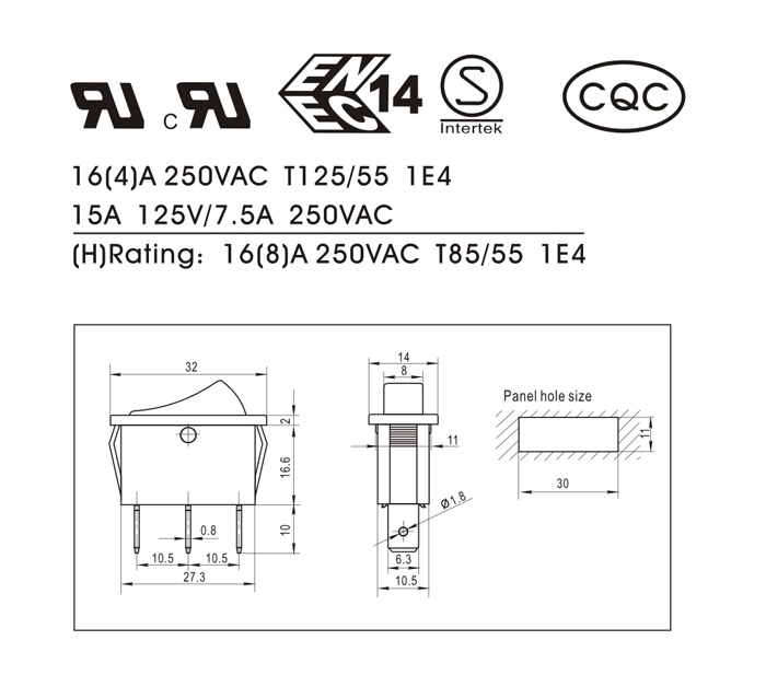(H): 16(8)A 250VAC T85/55 1E4